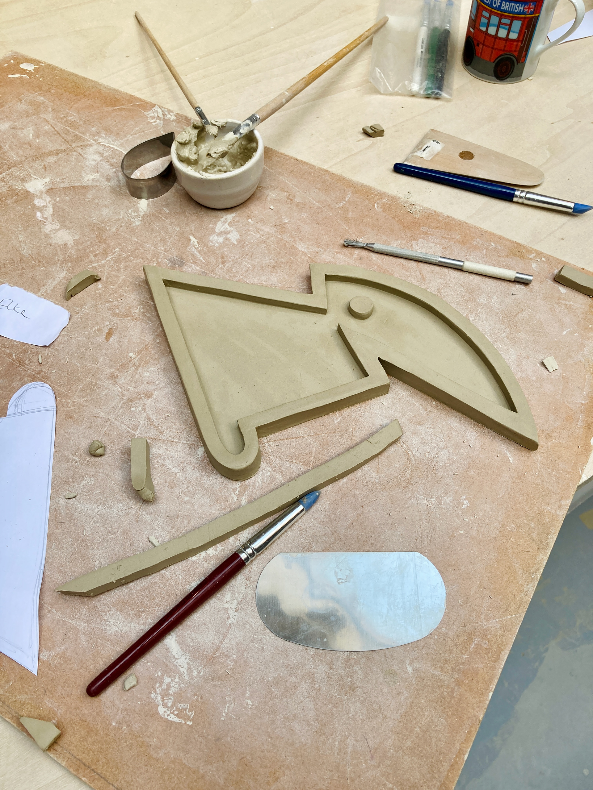 Geïnspireerd door het werk van Fernand Léger (Bateau blanc, 1951) in het Design Museum Den Bosch verwerkte ik een aantal van mijn doodles/tekeningen tot ruimtelijke vormen van keramiek.